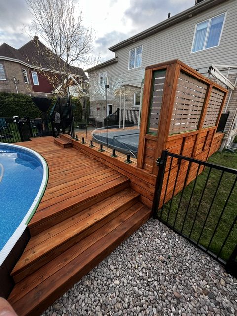 Inspirez-vous de nos réalisations pour planifier votre projet de pavé uni ou de votre patio en bois pour améliorer vos espaces de vie extérieurs !